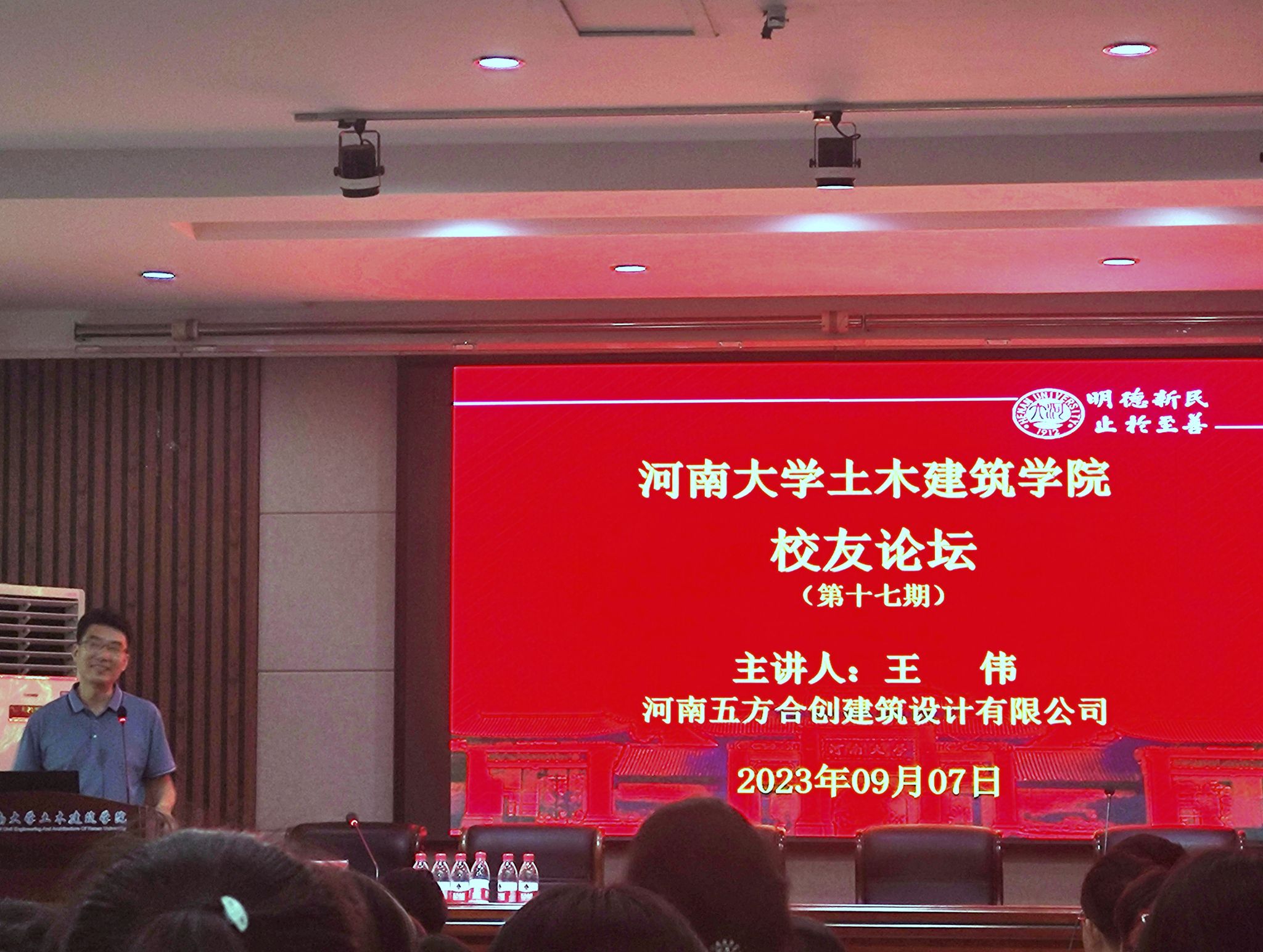 97日上午,足球比赛比分 96届建筑学专业校友王伟受邀在结构报告厅为2023级新生进行了建筑十二谈的优秀校友职业生涯规划分享会”,王伟现任职河南第五方合创建筑设计有限公司总建筑师、副总经理。