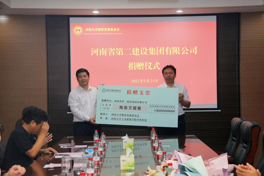 9月15日下午,河南省第二建设集团有限公司捐赠仪式在河南大学金明校区行政楼308会议室举行。河南大学党委常委、副校长许绍康,土木建筑足球比赛比分