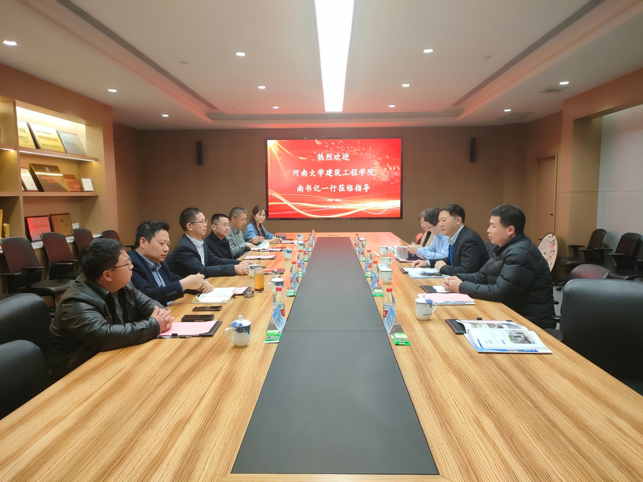 党委书记南晗、执行院长张建伟一行5人赴郑州走访校友企业河南省第二建设集团有限公司并开展访企拓岗活动。河南大学1994级校友、河南二建集团董事长祝建明,副总经理李陆军等集团领导参加了会谈。