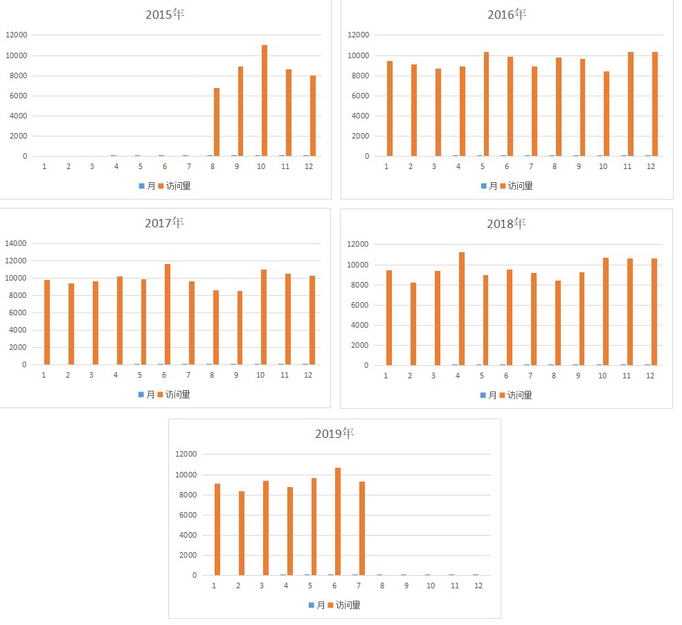 自2015年8月网站建立以来,吸引了大量访问者。截止到2019年7月29日,网站访问量已经达到45万多,年平均访问量超过11万。详细情况如下: